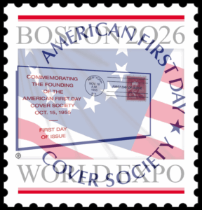 “We plan a strong presence at Boston 2026, with meetings, seminars and a booth,” said AFDCS president Lloyd A. de Vries. “With as many as half a dozen U.S. issues being released at Boston 2026, those eight days will be an exciting time for first day cover collectors.”