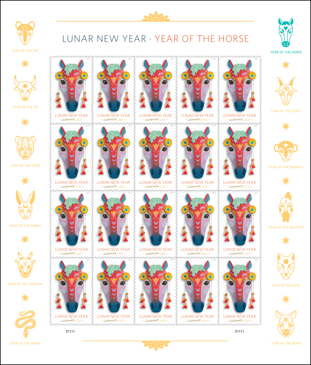 What: The U.S. Postal Service celebrates the Lunar New Year with the release of the Year of the Horse stamp. The Year of the Horse begins Feb. 17, 2026, and ends Feb. 5, 2027.