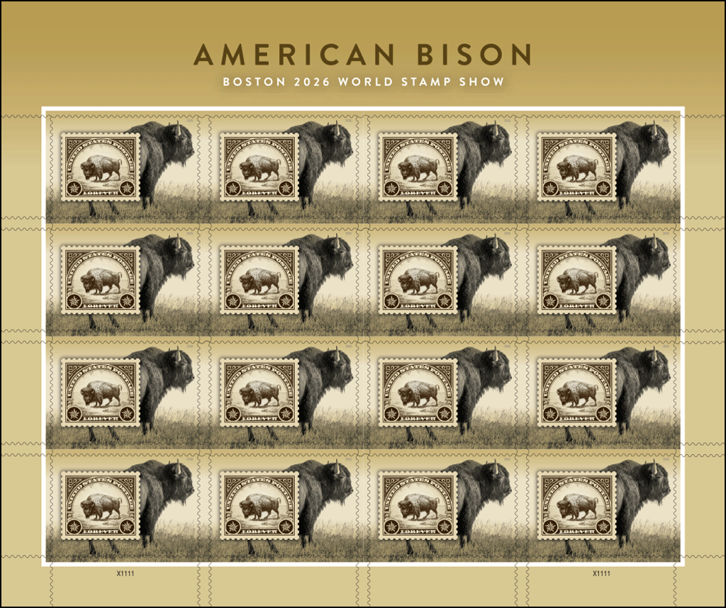 As pointed out by Lefty Dundee, here is what the full pane will look like.That does seem to indicate that it will be a Forever stamp, or at least not a high value, as I had thought. Note also that the pane’s selvage indicates this will be issued at Boston 2026, May 23-30.