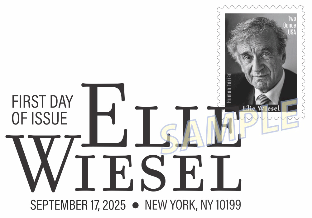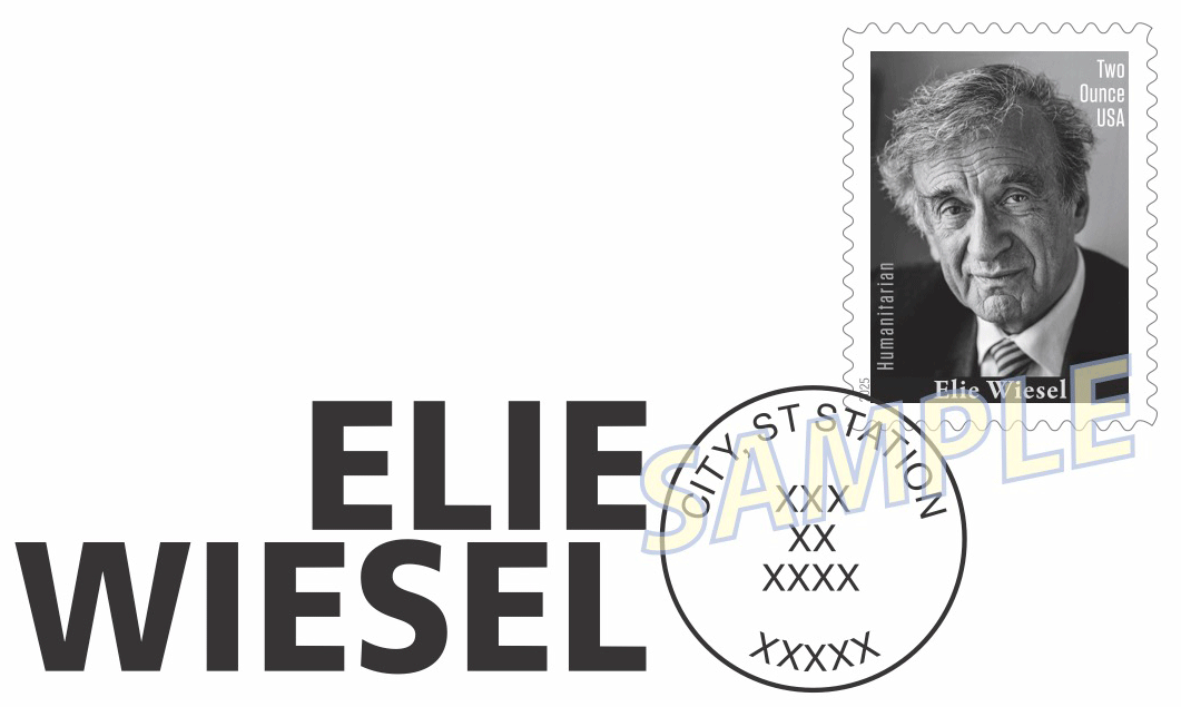 The first-day-of-issue event for the 2-ounce mail stamp is free and open to the public. News of the stamp is being shared with the hashtag #ElieWieselStamp.