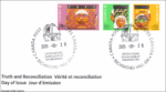 The issue includes three unique stamps (available in a booklet of six) and an Official First Day Cover (OFDC). Each of the three stamps features a different side of the Bentwood Box reflecting the distinct cultures of First Nations, Inuit and Métis from across the country, and their children who attended residential schools.