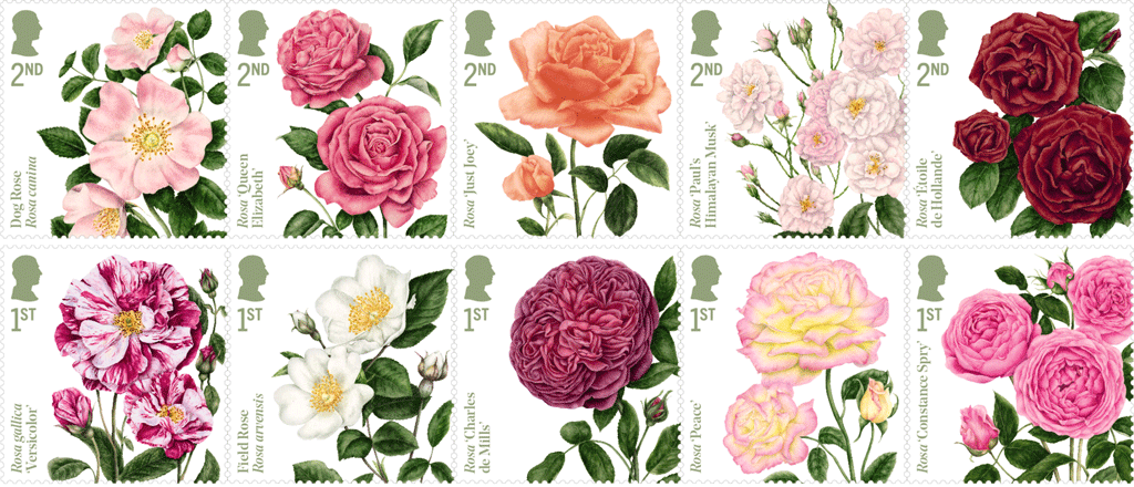 David Gold, Director of External Affairs & Policy, Royal Mail, said: “Roses are a familiar part of many British gardens, as well as holding a special place in British culture and heritage. These beautiful stamps bring together art and horticulture through original illustrations of ten distinctive roses, each carefully interpreted to capture its unique character.”